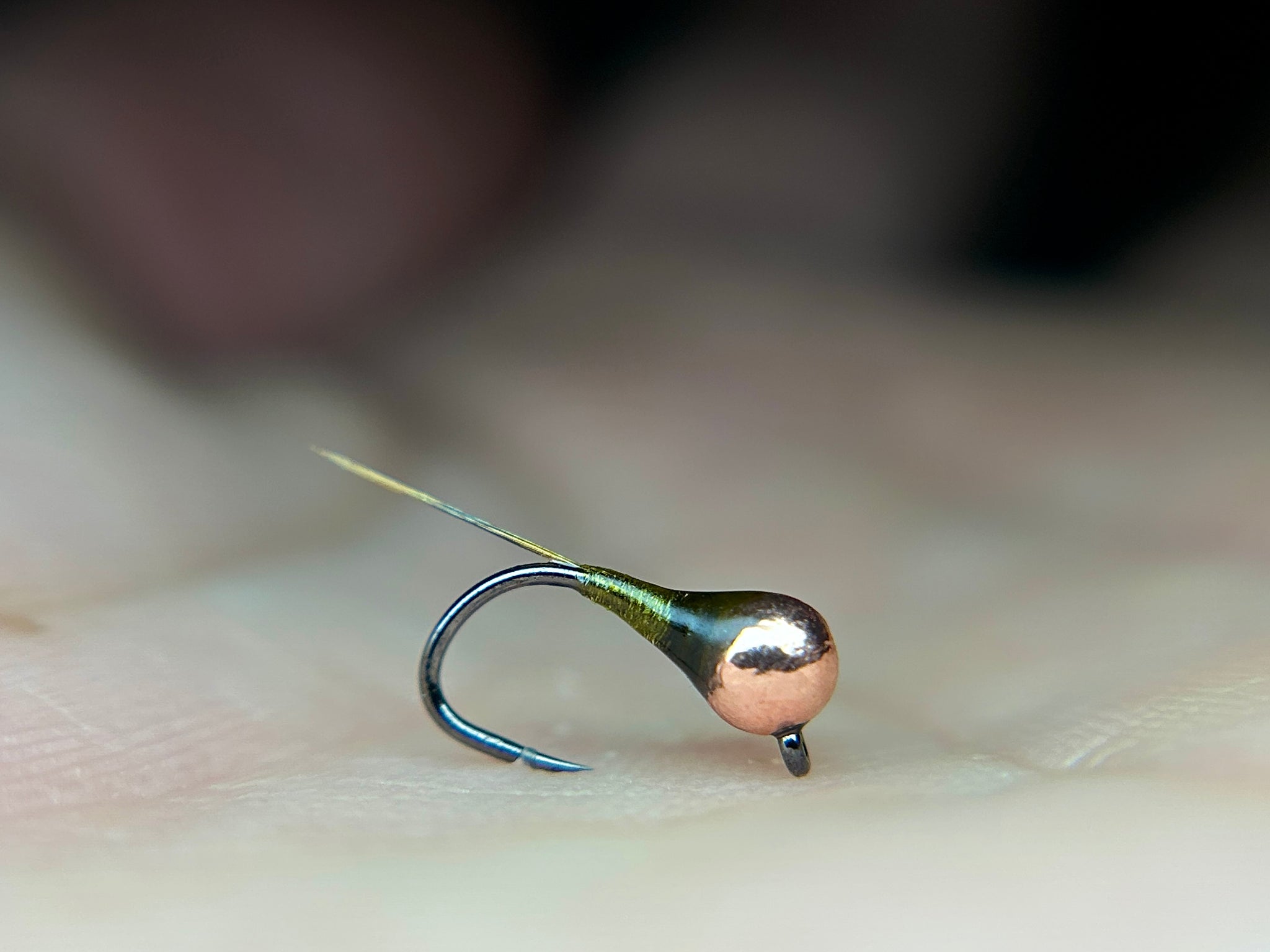 Void of any flash or hot spots, this simple and drab pattern makes for an excellent fly when fish become skidish. The body is constructed out of light olive Body Quill "thread". This bound multi filament material produces a subtle mottled/ textured look and is faintly transparent.